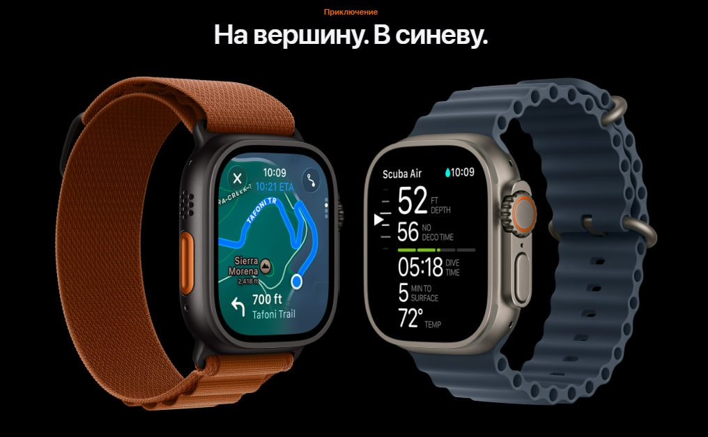 Apple Watch Ultra 3 оснащены широкоформатным дисплеем с яркостью до 3000 нит и улучшенным углом обзора — изображение остается четким даже под прямым солнцем. При этом умные часы сохраняют эргономичный дизайн, а ремешки разного типа (Milanese Loop, Trail Loop, Alpine Loop и Ocean Band) надежно удерживают устройство на запястье.
